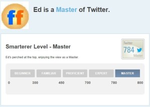 • Klout.com Score – This single numeric measurement of your online reputation has come under a lot of scrutiny lately and, just like a Smarterer badge, it’s just a single measurement.  But it beats having no measurement at all.  Keep in mind, however, that even having a mid-range Klout score (30 or above) is an indication that at least your social media expert has a digital “pulse”.